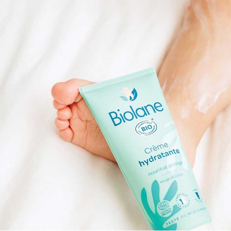 Organik sertifikalı Biolane yüz ve vücut nemlendirici krem, bebeklerin hassas ciltleri için idealdir.
