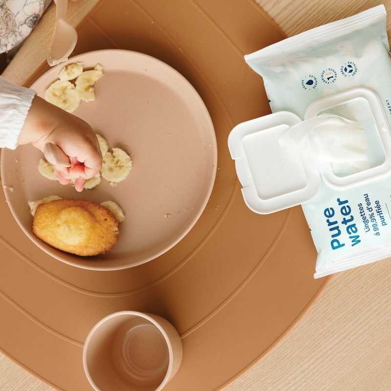 Saf Sulu Biolane ıslak mendiller, bebeğinizin poposunu, vücudunu ve yüzünü tek bir hareketle nazikçe temizler.