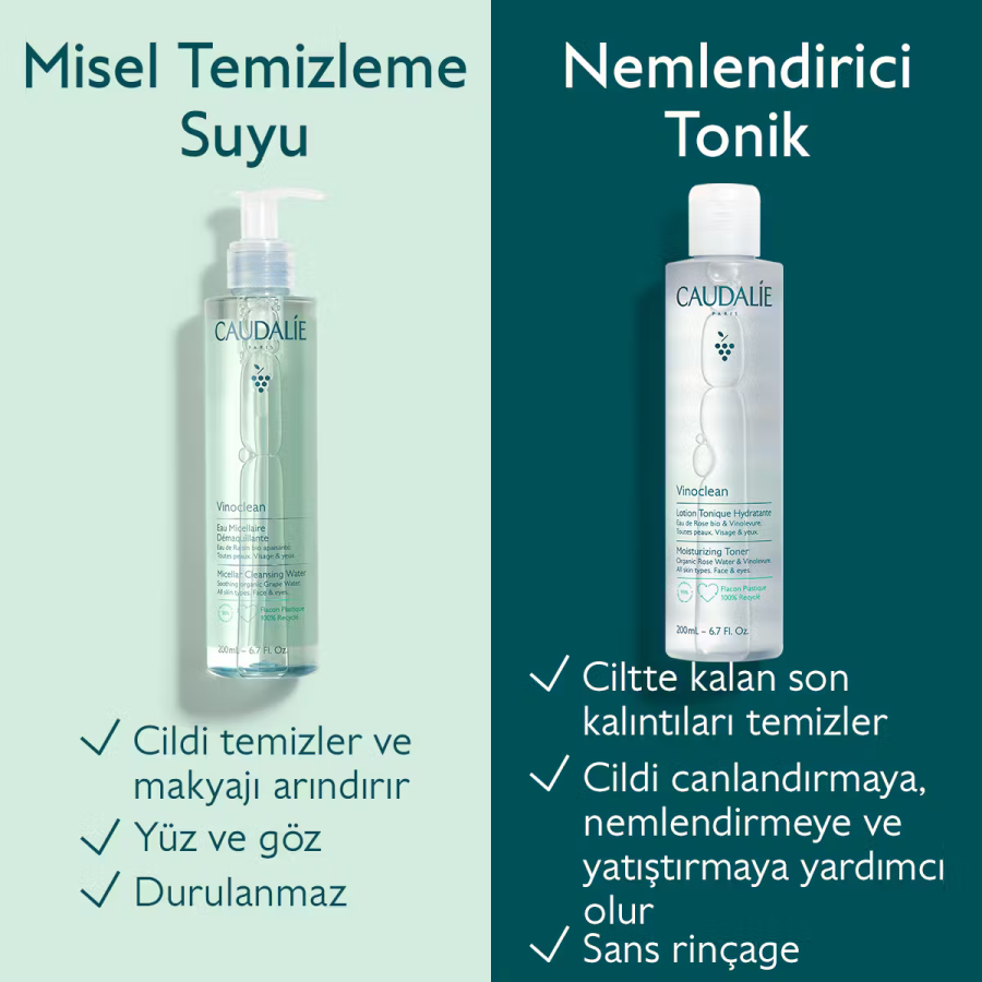 Bu vegan temizleme suyu, makyajı tek adımda çıkarır ve yüzü temizler. En hassas ciltleri bile nemlendiren ve yatıştıran Üzüm Suyu ile zenginleştirilmiş bu ürün, doğal nem bariyerini korurken yüzdeki makyajı etkili bir şekilde temizler. Cilt temiz, yumuşak ve rahat olur.