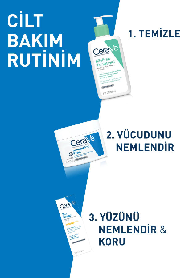 Yüz ve boyundaki koruyucu cilt bariyerinin onarılmasına yardımcı olurken gün boyu nemlendirme sağlar. Cilt için gerekli 3 temel seramid, niasinamid (Vitamin B3) ve hyalüronik asit içerir. Gün boyu cildi nemlendirirken cildin koruyucu bariyerinin onarılmasına yardımcı olur. Zararlı güneş ışınlarına karşı koruma sağlar. Parfüm içermeyen formülü hassas ciltler için uygundur.
