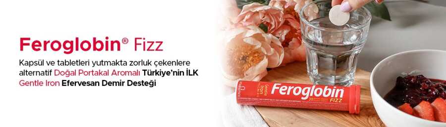 Feroglobin® Fizz, efervesan tablet formunda demir ve ko-faktörlerini birlikte bulundurur. Her bir kapsülde 17mg demir (Gentle Iron) içermektedir. 1 kutuda 20 efervesan tablet bulunur. Kapsül ve tabletleri yutmakta zorluk çekenler için doğal portakal aroması ile ideal bir alternatif sunar.2