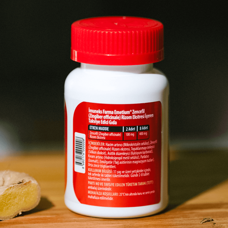 İmuneks Farma Emetium® zencefil (zingiber officinale) rizom ekstresi içeren gıda takviyesidir.