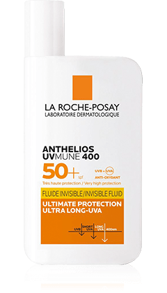 Anthelios UVMUNE 400 50+ görünmez sıvı güneş kremi, cildi 400 nm'ye kadar ultra uzun UVA ışınlarından koruyan yeni MEXORYL400 filtresini içerir.