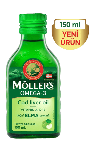 Möller’s Omega-3 sıvı formu doğal tutti frutti aromalıdır. Şeker, tatlandırıcı, koruyucu ve domuz ürünleri içermez.