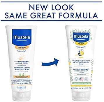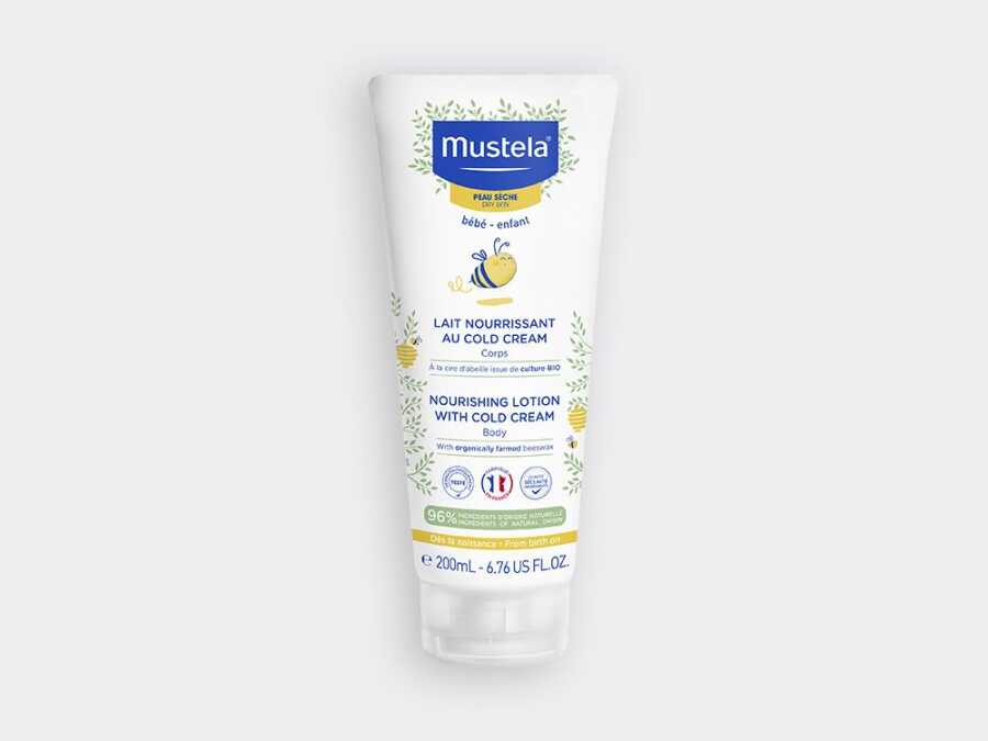 Mustela Cold Cream içeren vücut losyonunu sabah ve akşam bebek veya çocuğunuzun vücuduna uygulayın.