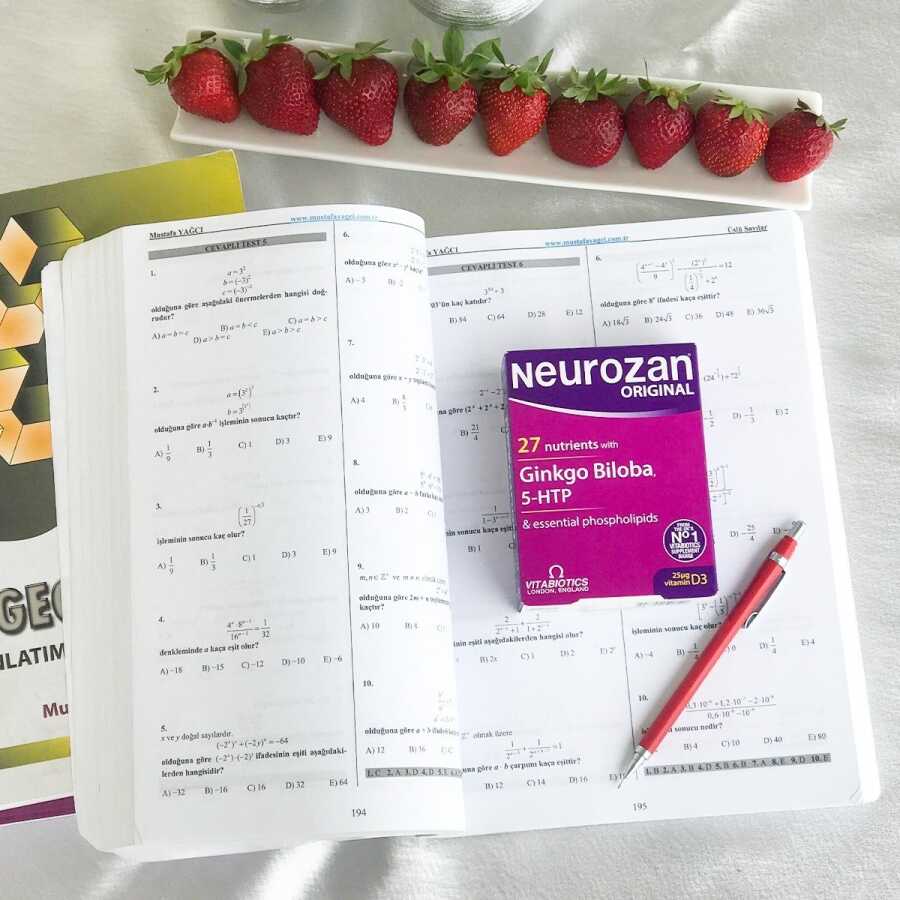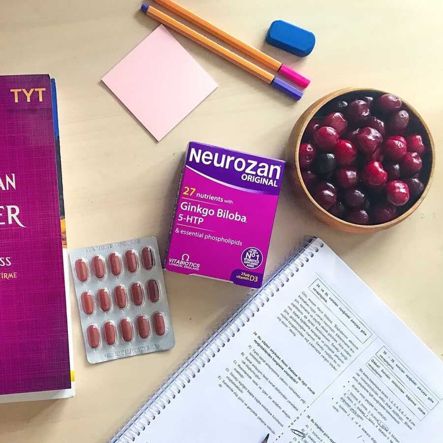 Neurozan®, B kompleks vitaminleri, demir, iyot, çinko, magnezyum gibi vitamin minerallere ek Ginkgo Biloba, 5-HTP, L-Arginin, Fosfatidilserin, Fosfatidilkolin, Glutatyon, Koenzim Q10, ve L-Glutamin gibi özel besinleri de içeren geniş kapsamlı bir gıda takviyesidir.