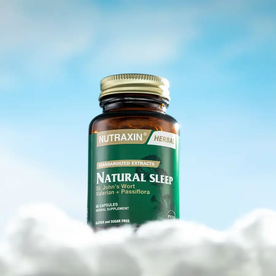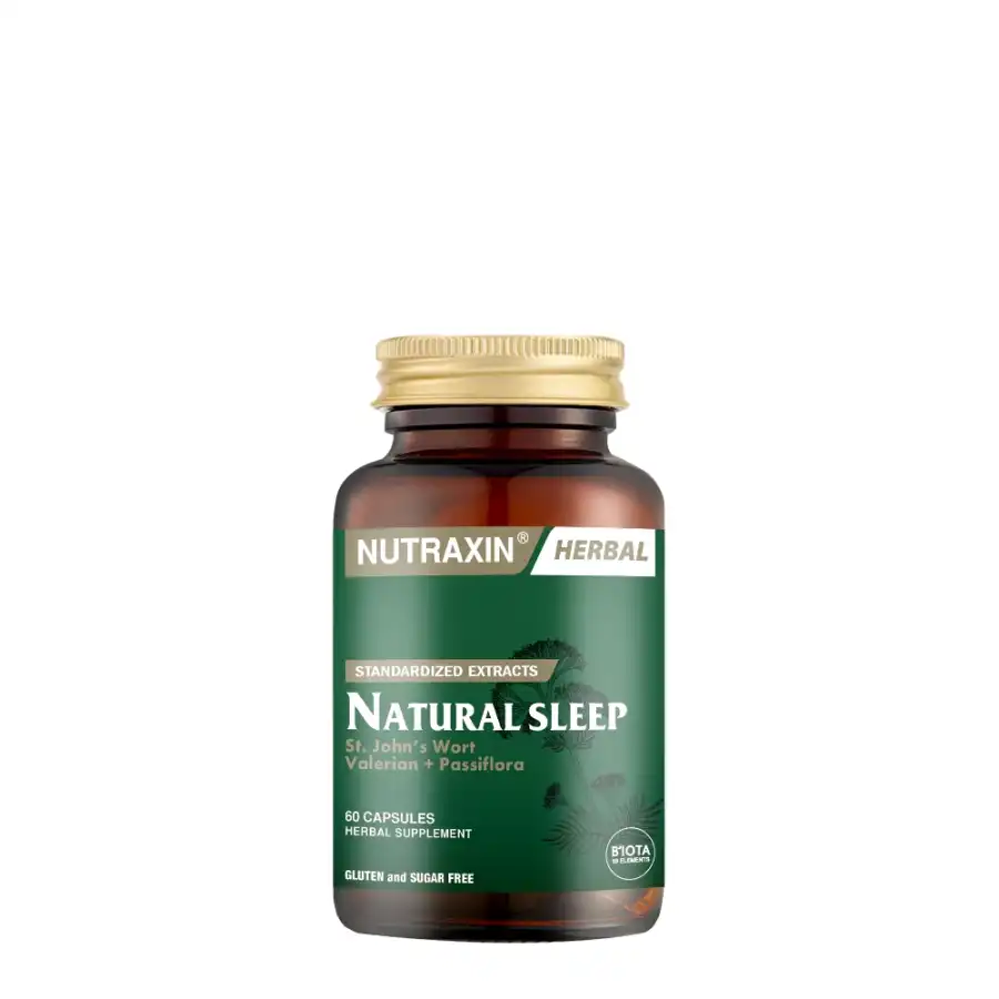 Nutraxin Natural Sleep; sarı kantaron, çarkıfelek ve kediotu bitki ekstreleri içeren bir üründür. Çarkıfelek otu yaygın olarak Pasiflora, sarı kantaron bitkisi de St.John's Wort olarak bilinmektedir.