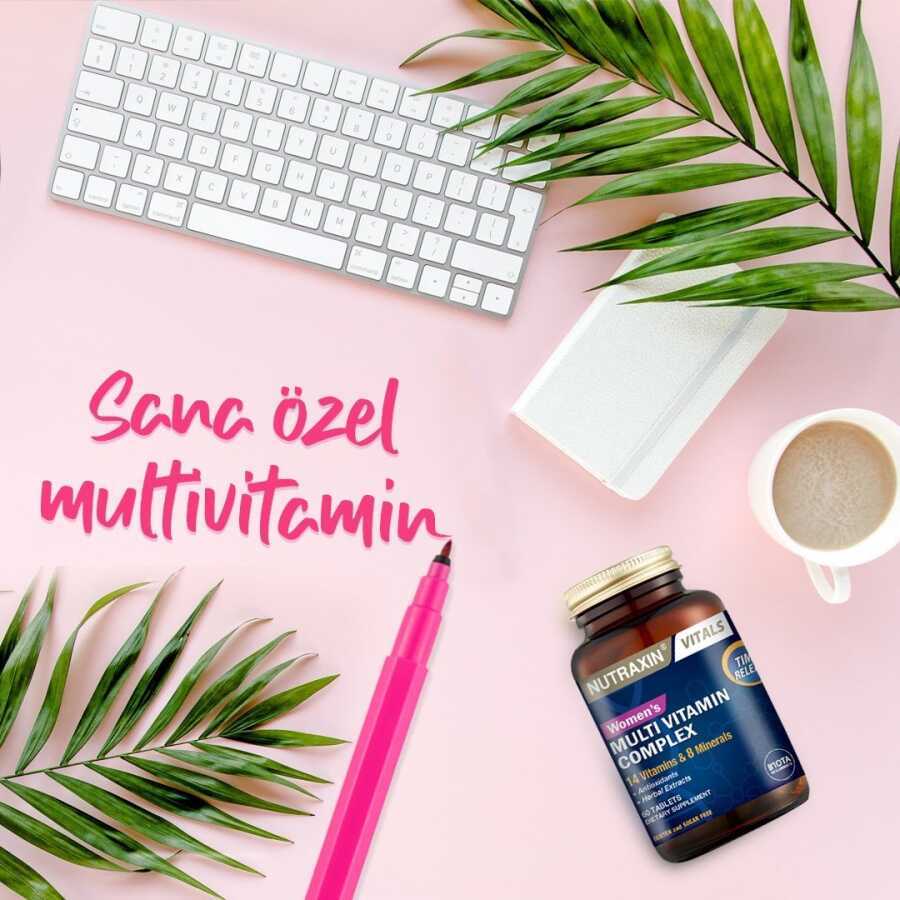 Nutraxin Multivitamin&Mineral Complex; kadınların ihtiyacı olan vitamin, mineral ve bitki içeren özel formüldür. Günlük kullanıma uygun olan Multivitamin&Mineral Complex, zaman salınımlı tablet özelliğine sahiptir.