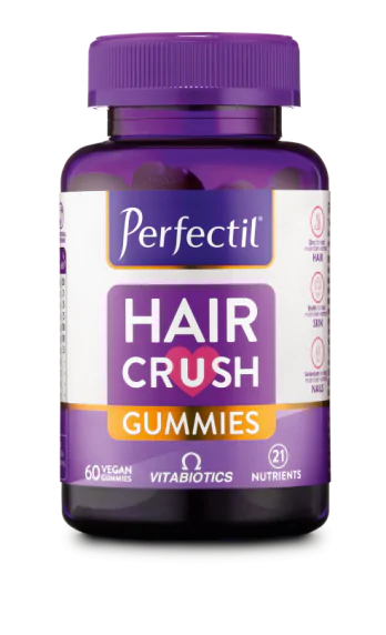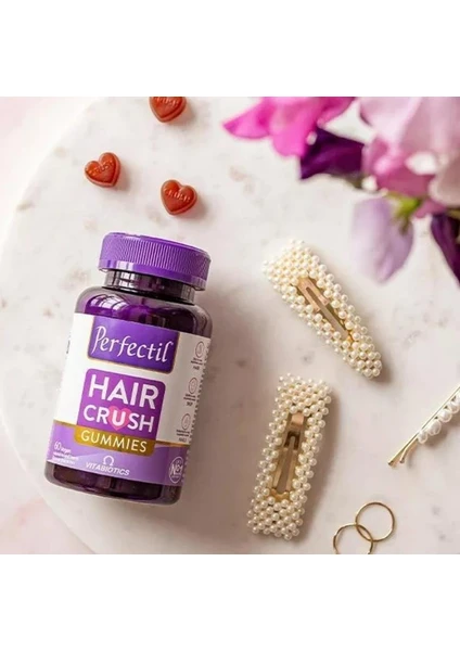 Perfectil Hair Crush Gummies, saç sağlığını ekstra desteklemek isteyenlere özel olarak formüle edilmiş çiğnenebilir gummy formda karışık meyve aromalı vegan bir multivitamindir.