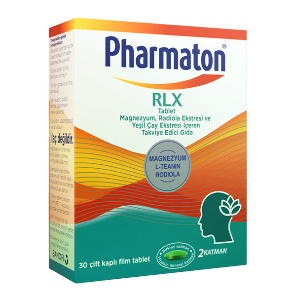 Pharmaton® RLX tablet magnezyum, rodiola ekstresi ve yeşil çay ekstresi içeren takviye edici gıdadır. 3’lü formülü ile gün boyunca daha iyi hissetmenize yardımcı olur.