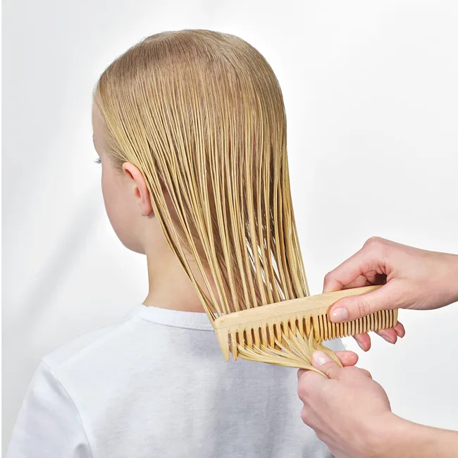 Islak veya kuru saça uygulayın. Saçınızın dolaşıklığını açın. Durulamaya gerek yoktur. Gözle temas halinde bol su ile durulayın.
