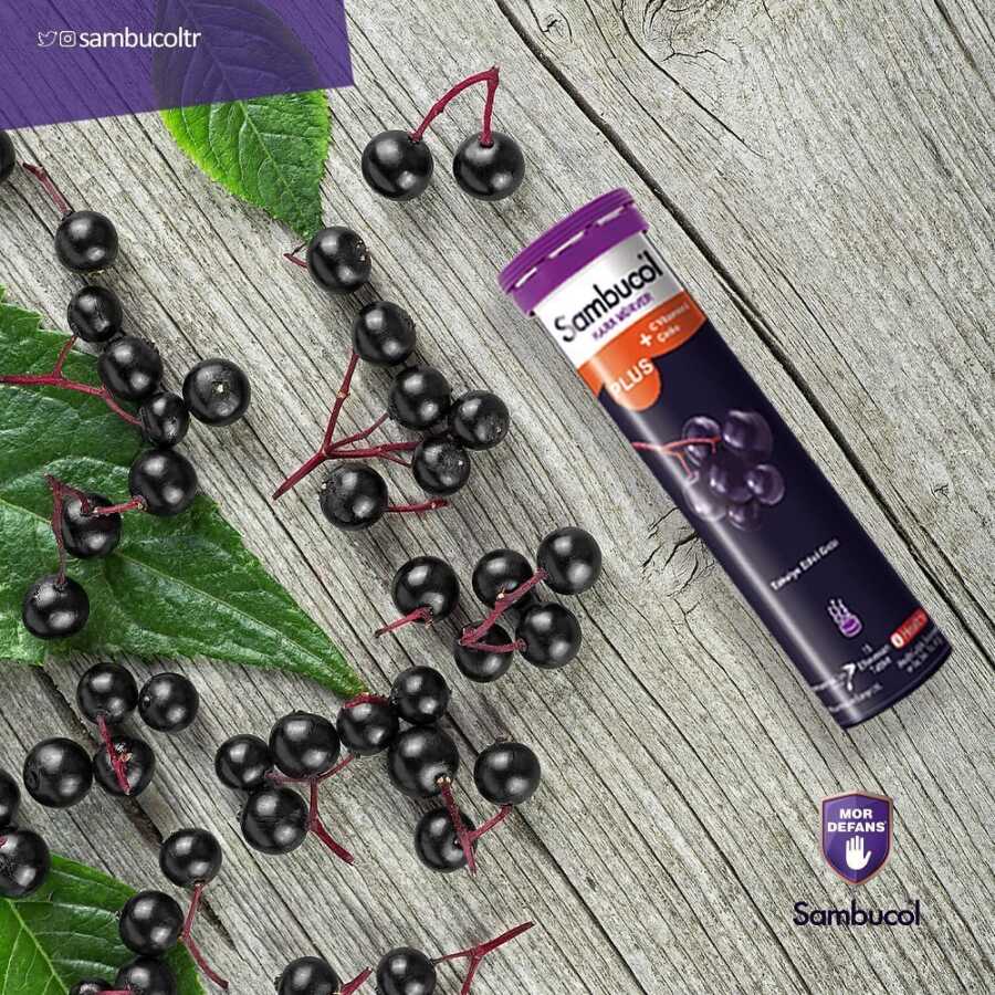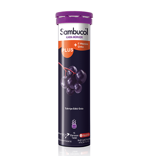 Sambucol Plus Efervesan Tablet kara mürver, C vitamini ve çinko içeren takviye edici gıdadır. C Vitamini ve Çinko bağışıklık sisteminin normal fonksiyonuna katkıda bulunur.