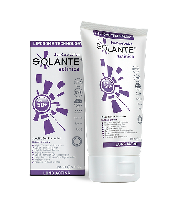 Cilt sağlığının korunması ve ciltte kalıcı hasarların önlenmesi için, güneş koruyucuların mevsime ve havanın durumuna bağlı olmaksızın yıl boyu kullanılması uzmanlar tarafından tavsiye edilmektedir. Dışarı çıkmadan 15 dakika önce güneş koruyucuyu cildinize uygulayınız. Solante® ürünleri üstün lipozom teknolojisi ile üretilmesinden dolayı 'uzun süreli” güneş koruması sağlamaktadır. Ancak ulusal ve uluslararası sağlık otoritelerinin önerilerine uygun olarak bütün güneş koruyucu ürünlerin her 3-4 saatte bir uygulanması, özellikle aşırı terleme, yüzme ve kurulanma gibi fiziksel aktivitelerden sonra tekrar edilmesi önerilir.