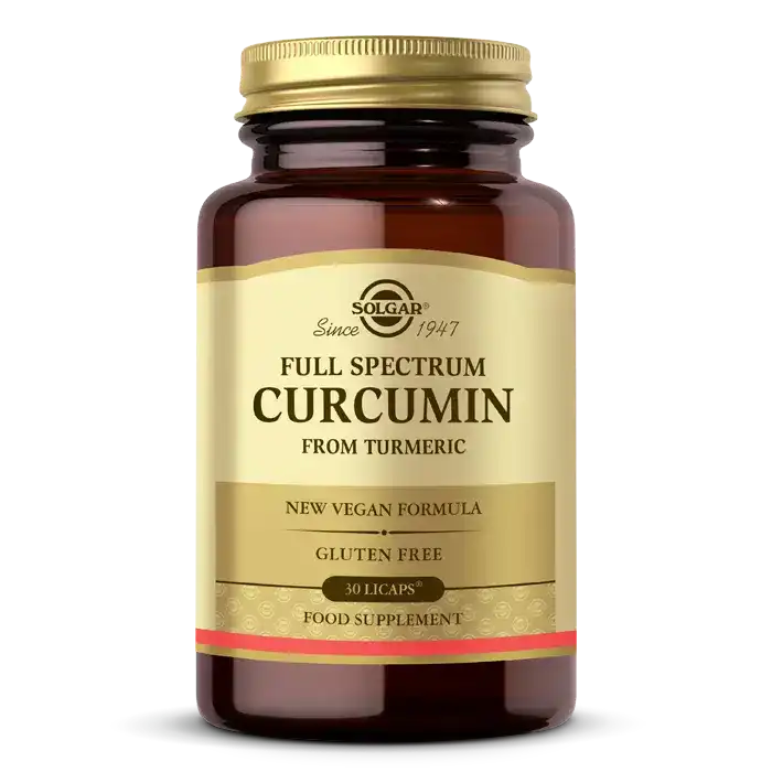Solgar ® Full Spectrum Curcumin, normal zerdeçal tozundan farklı olarak, doğal zerdeçal kökünden ( Curcuma longa ) saflaştırılmış ve konsantre edilmiş, standartlaştırılmış aktif form olan %95 kurkumin özütü ile başlar.